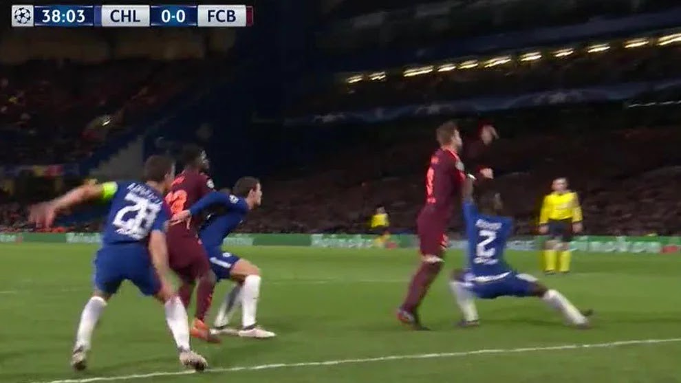 لا تبدو مواجهة تشيلسي وبرشلونة مثيرة للجدل من الناحية التحكيمية كما كان الأمر بشكلٍ شبه دائم في السنوات الماضية، لكن لا تخلو المباراة حتى الآن من بعض الحالات التي أثارت احتجاجات الفريقين على الحكم التركي كونيت شاكير.